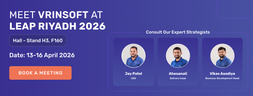Vrinsoft Technology is excited to participate in LEAP 2026 in Saudi Arabia, one of the region’s largest technology events. Our team will showcase innovative digital solutions and connect with businesses looking for reliable technology partners for mobile apps, AI solutions, and custom software development.